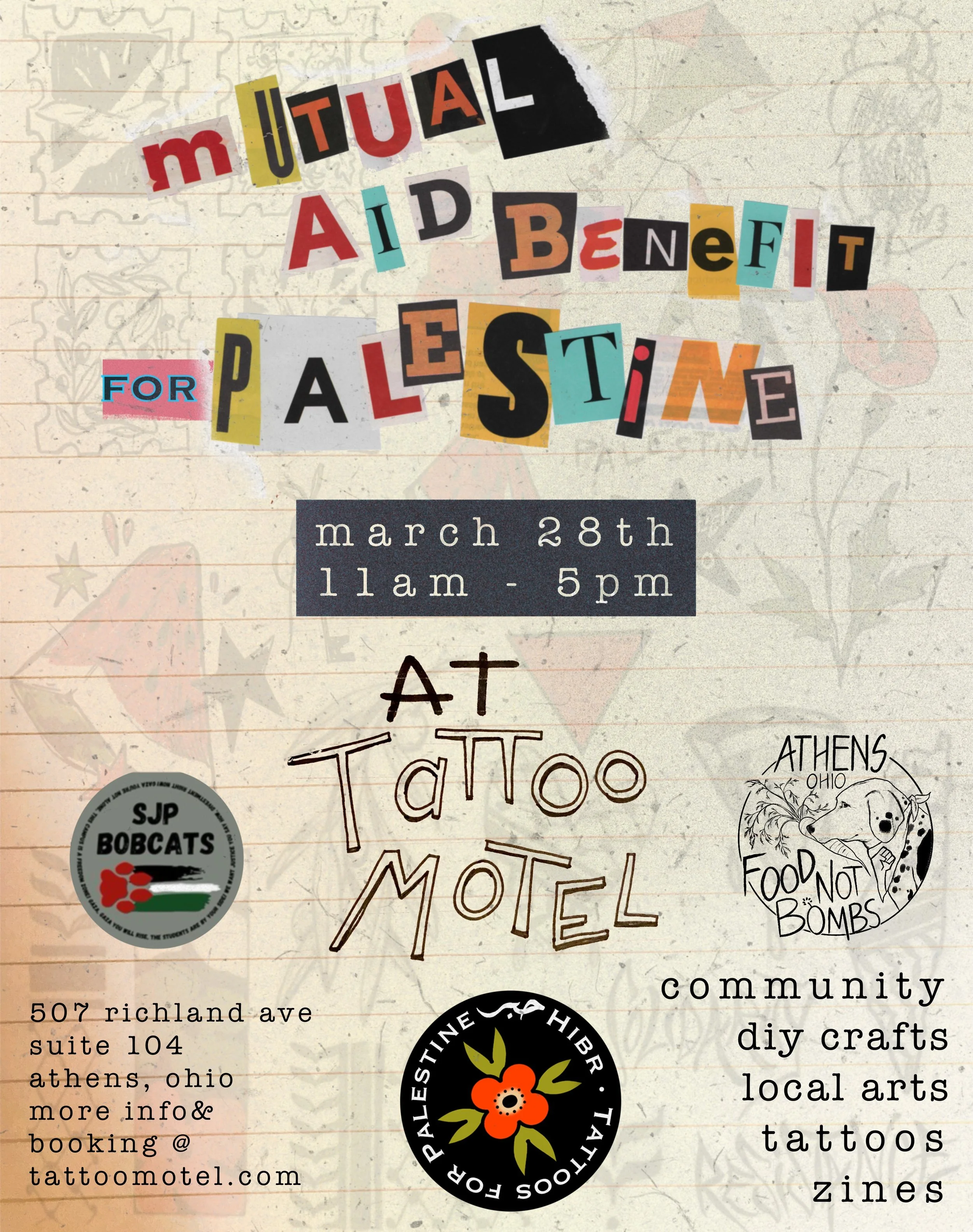 Art & Tattoo Benefit for mutual aid in Palestine in collaboration with Hibrfalastin, sjp bobcats, and athensfnb